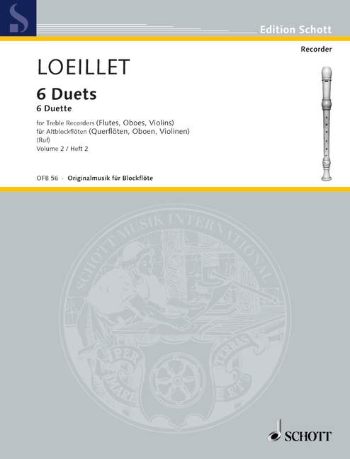 LOEILLET DE GANT, Jean Baptiste6 Duette Heft 2: G-Dur, F-Dur, d-mollB. Schott'S Sohne/Mainz