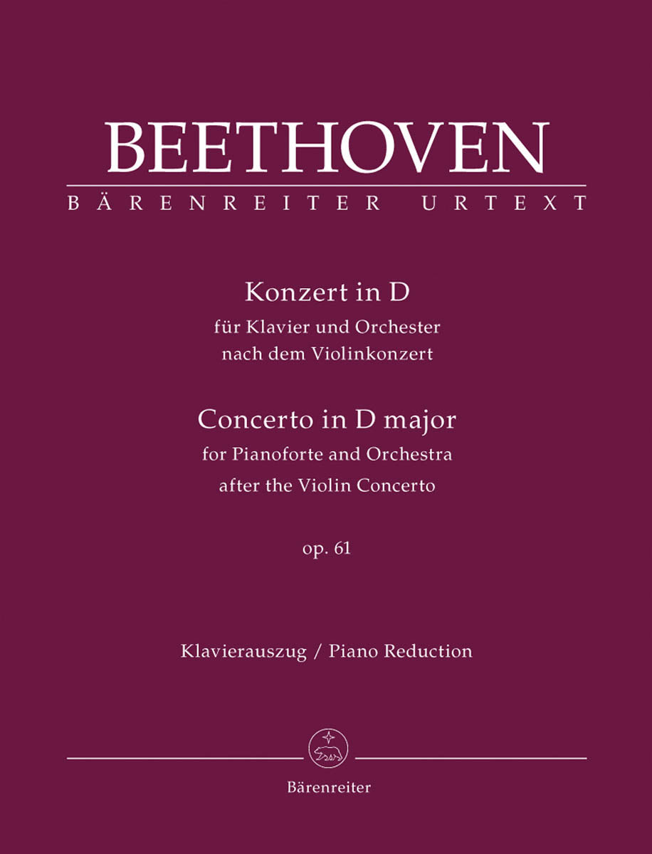 ピアノリダクション版+ピアノソロパート(フィンガリングなし、フィンガリング付) BEETHOVEN, Ludwig vanKonzert D-dur Op.61 nach dem Violinkonzert/Urtext/Ed. Del MarBarenreiter-Verlag