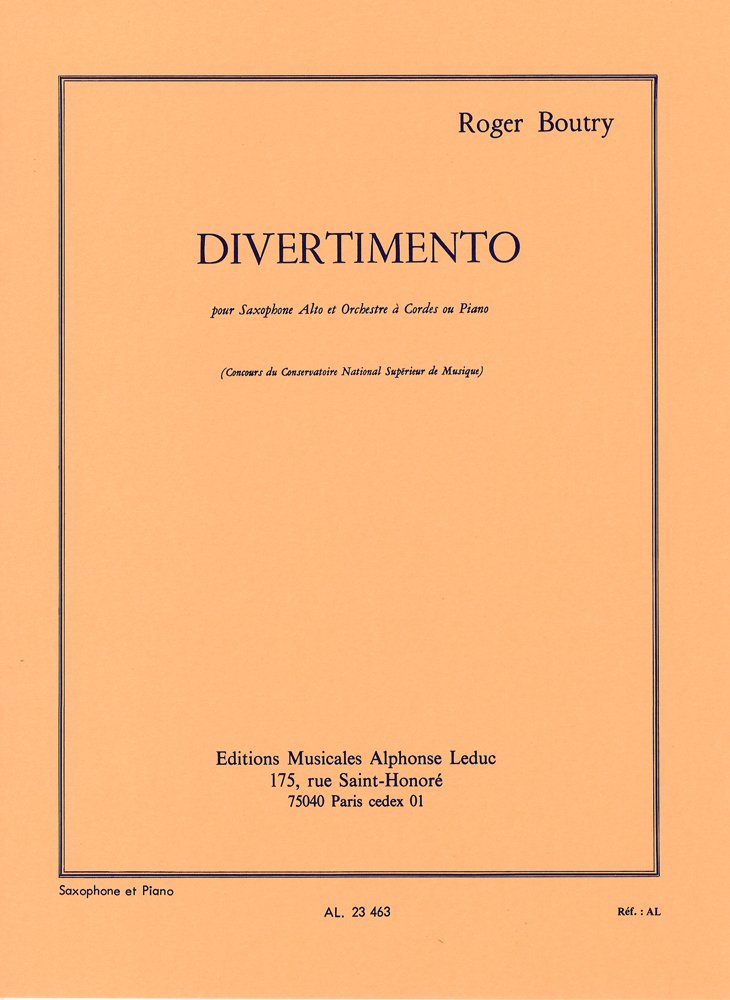 ブートリーは20世紀のフランスの作曲家で多くの管楽器のソロ作品を残しました。この曲は1963年のパリ音楽院の春のコンクールのために作曲された作品で、コンクールの課題曲になる事も多く、サクソフォン奏者の重要なレパートリーになっています。 BOUTRY, RogerDivertimento(Sax. in E-Flat)Alphonse Leduc