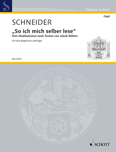 SCHNEIDER, EnjottSo Ich Mich Selber Lese(High, Organ)B. Schott'S Sohne/Mainz