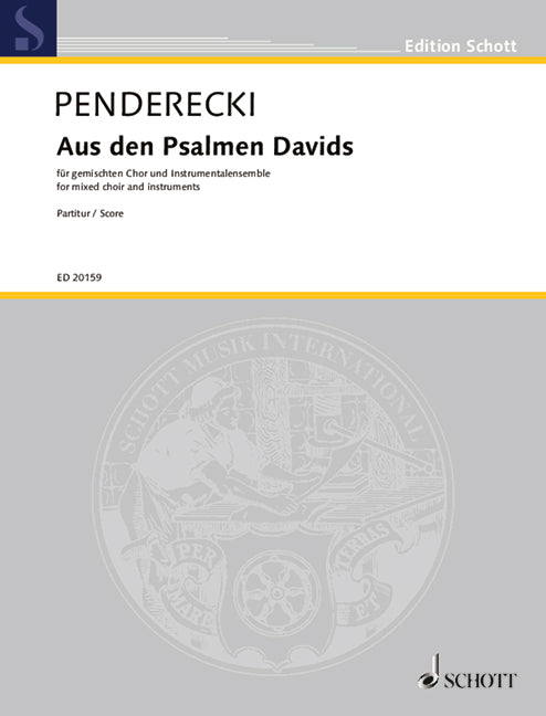 PENDERECKI, KrzysztofAus den Psalmen Davids fur gemischten Chor und InstrumenteB. Schott'S Sohne/Mainz