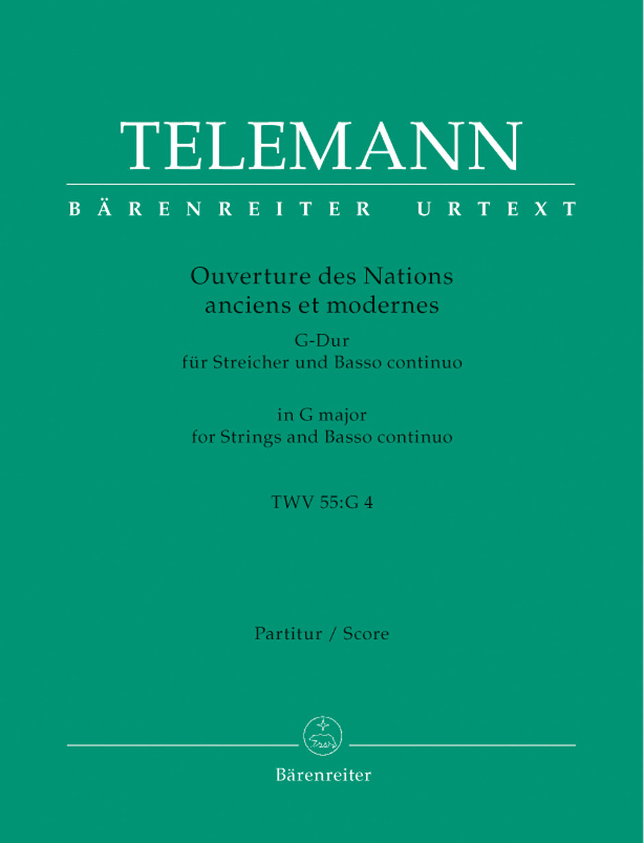 【編成】 弦楽オーケストラと通奏低音 TELEMANN, Georg PhilippOuverture G-dur TWV 55/G4 "Des Nations anciens et modernes"/Urtext: PartiturBarenreiter-Verlag