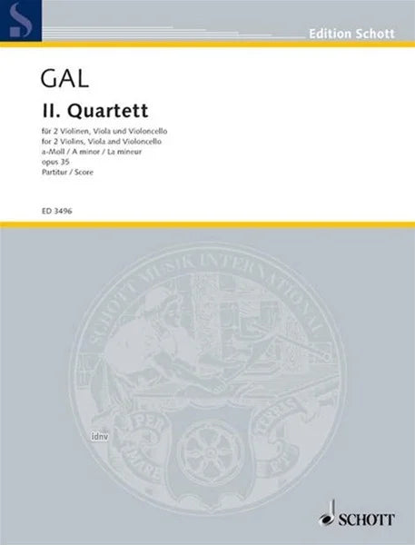 GAL, HansString Quartet No.2 in A Minor Op.35: ScoreB. Schott'S Sohne/Mainz