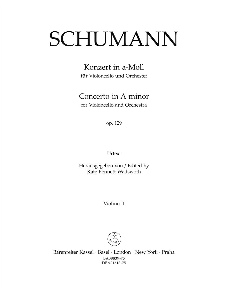 ※こちらの商品は、4冊よりご注文が可能です。 SCHUMANN, RobertKonzert a-moll Op.129/Urtext/Ed. Wadsworth: Violine 2Barenreiter-Verlag