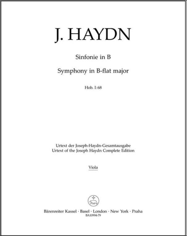 ※こちらの商品は、3冊よりご注文が可能です。 HAYDN, Franz JosephSinfonie Nr.68 B-dur Hob.I/68/Urtext/Ed. Stockmeier: ViolaBarenreiter-Verlag