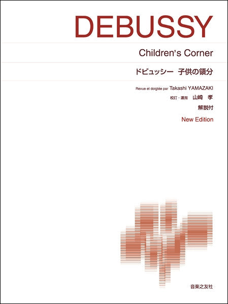 ドビュッシー没後100年記念企画。2005年発行のニュー・スタンダード・ピアノ曲集『ドビュッシー ピアノ作品集4』に収録されている《子供の領分》を新たに浄書。さらに山崎孝氏がジェルメーヌ・ムニエ(パリ高等音楽院名誉教授)やローズル・シュミット(ミュンヘン音楽大学教授)から引き継いだ「合理的な運指法」を追加。ムニエによる前書きと、初版・自筆譜・原典版などを比較して詳細に記した校訂報告は、勉強する全ての人にとって必ず役に立つ情報である。