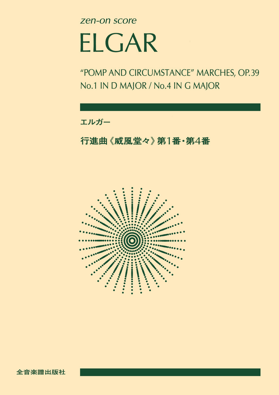 エルガーは《威風堂々》のタイトルで全5曲を完成させていますが、この全音スコアは,その最も有名な「第1番」とともに、次いで耳にする機会が多い「第4番」をカップリングしました。