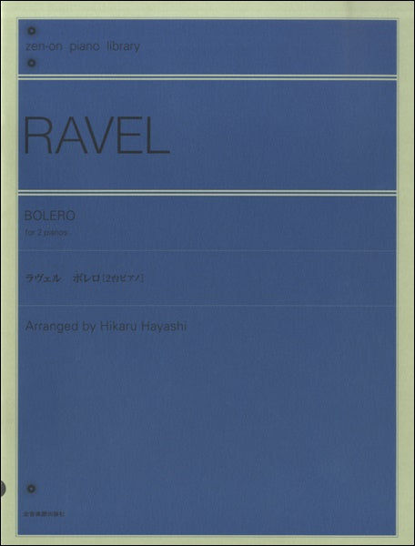 ラヴェル自身による2台ピアノ編曲版は、片方のパートがひたすらリズム伴奏を受け持つアレンジになっていますが、この林 光による編曲版は、第1ピアノと第2ピアノが交互に入れ替わるため、両方のパートが主役になれるように編曲されています。