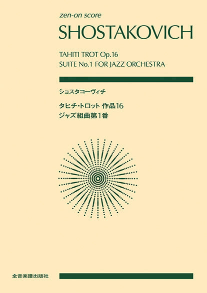 ヒット曲「二人でお茶を(Tea for Two)」をショスタコーヴィチが1920年代、小さめのオーケストラ用に軽妙でユニークな編曲をした《タヒチ・トロット》と、1930年代当時ソヴィエトでも流行したダンス音楽(いわゆるコンボ・ジャズ風軽音楽)の楽団のために作曲した「ジャズ組曲(第1番)」のオリジナルスコアを併収しています。このたび判型をひとまわり大きなサイズに変更して読みやすくなりました。解説は英語訳付きです。