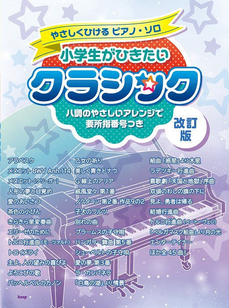 小学生にも馴染みのあるクラシックをやさしく弾けるピアノ・ソロのアレンジにしました。ピアノ初心者でも楽しめるようハ調にアレンジし、1曲を弾ききれるように曲のサイズをコンパクトにしてあります。見やすく弾きやすい大きな譜面に要所指番号付きです。