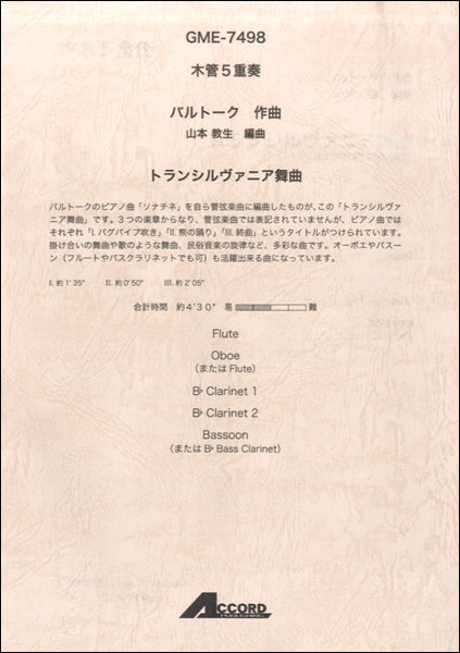 木管5重奏 バルトーク作曲 トランシルヴァニア舞曲