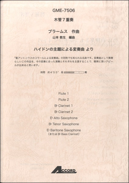 木管7重奏 ブラームス作曲 ハイドンの主題による変奏曲 より