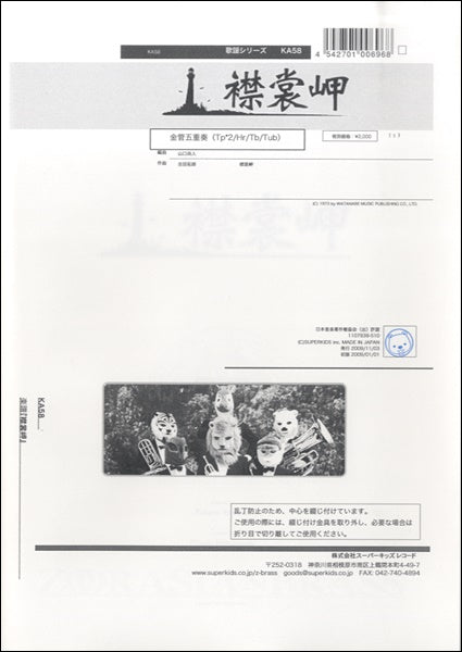 ズーラシアンブラスシリーズ 楽譜『襟裳岬』金管五重奏