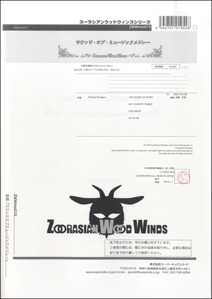 ズーラシアンウッドウインズシリーズ 楽譜『サウンドオブミュージックメドレー』  木管五重奏