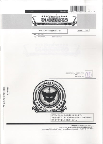 サキソフォックスシリーズ 楽譜『ひいらぎかざろう(Sax4)』 サックス四重奏