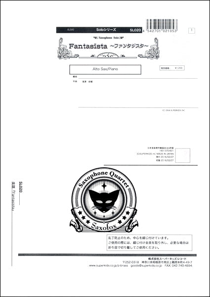 ズーラシアンブラスシリーズ 楽譜『Fantasista?ファンタジスタ?』 A.Sax+Pf