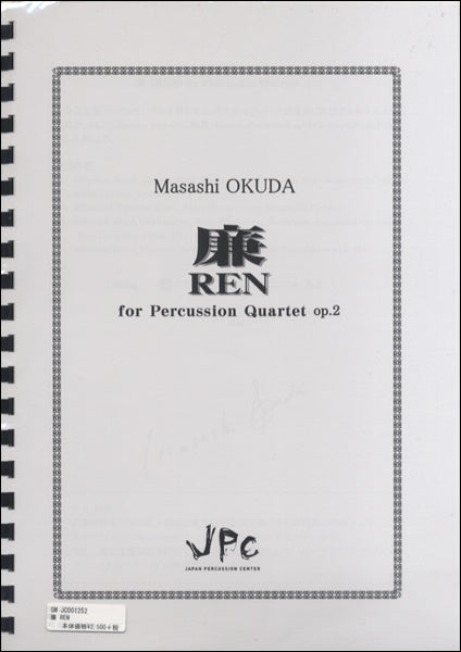 JC001252JPC楽譜 廉/REN for Percussion Quartet op.2 4重奏