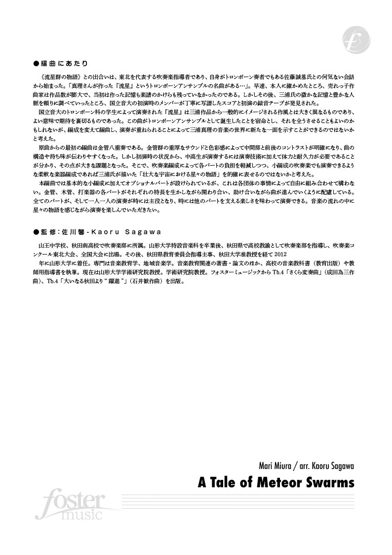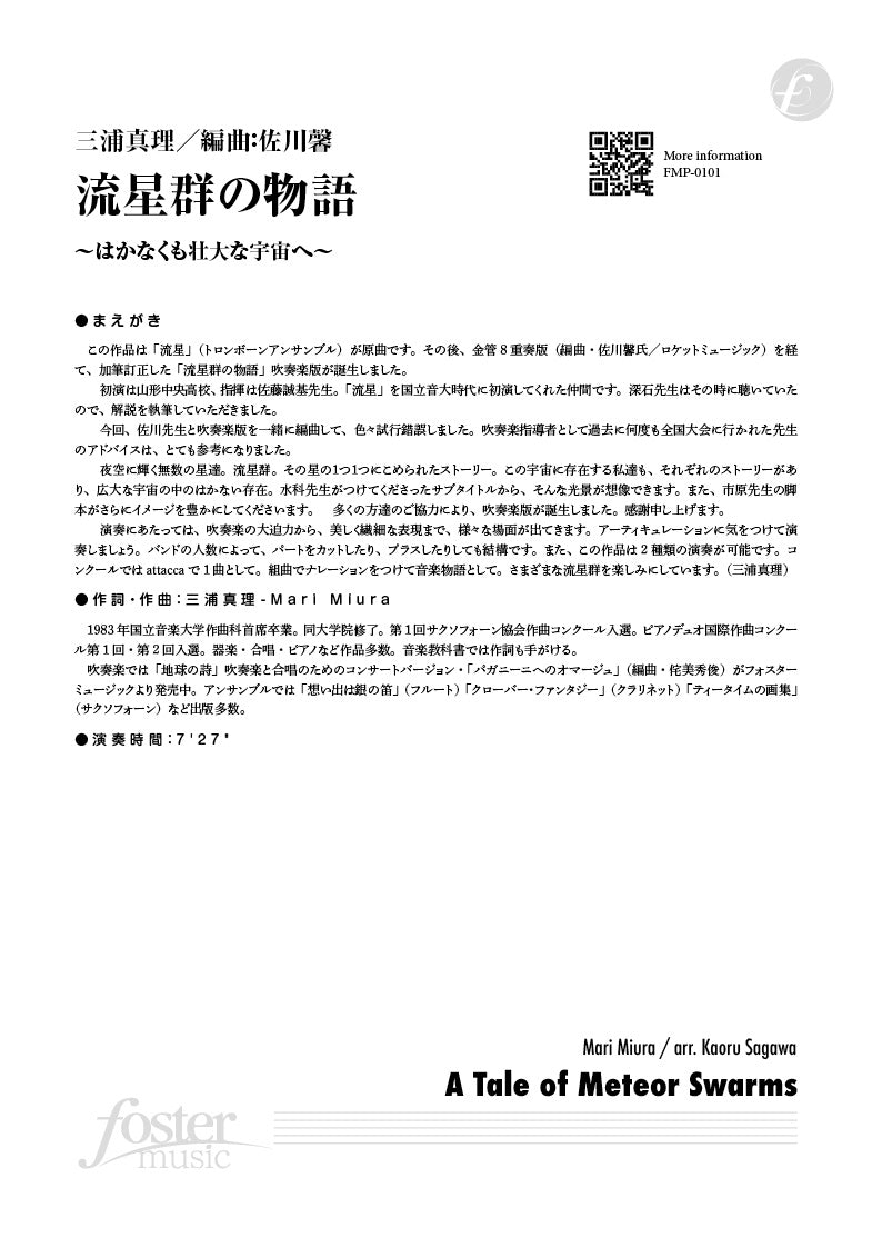 また、この作品は2種類の演奏が可能です。コンクールではattaccaで1曲として。組曲でナレーションをつけて音楽物語として。さまざまな流星群を楽しみにしています。(三浦真理)