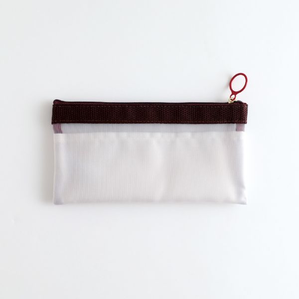 見せたいものと見せたくないものを分けることができ、前後のデザインの重なりも楽しめる学べるメッシュペンポーチです。