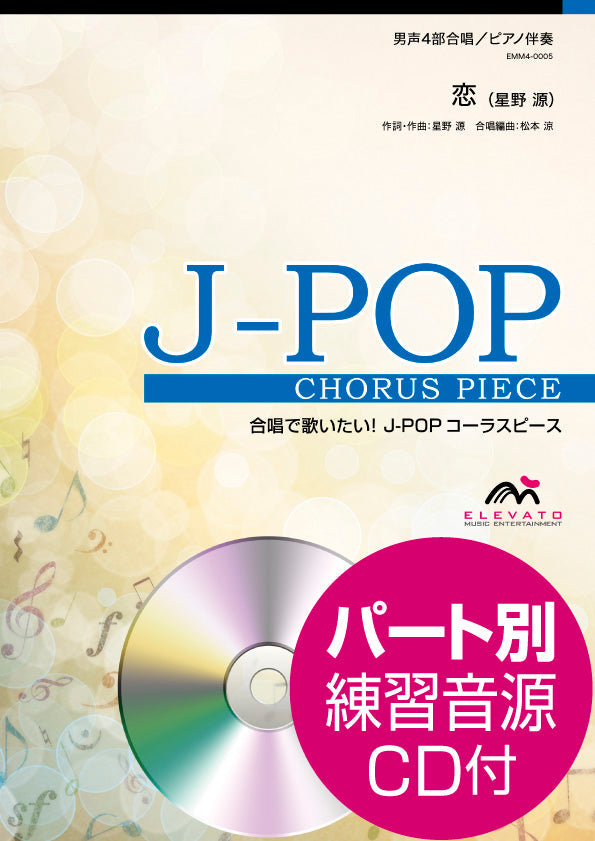 J-POPコーラスピース 男声4部合唱(テノール1・テノール2・バリトン・バス)/ピアノ伴奏 恋/星野源 参考音源CD付
