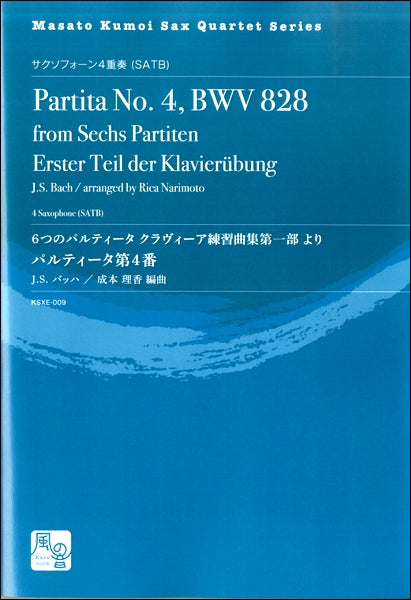 バッハ,J.S./成本理香編曲 6つのパルティータ クラウ゛ィーア練習曲集第一部 より パルティータ第4番 サクソフォーン4重奏(SATB)