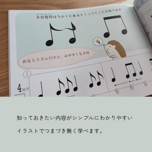 お好きなメインテキストと組み合わせて、ずっと役立つリズムの基礎が初心者からわかりやすく身にけられるリズムテキストです。