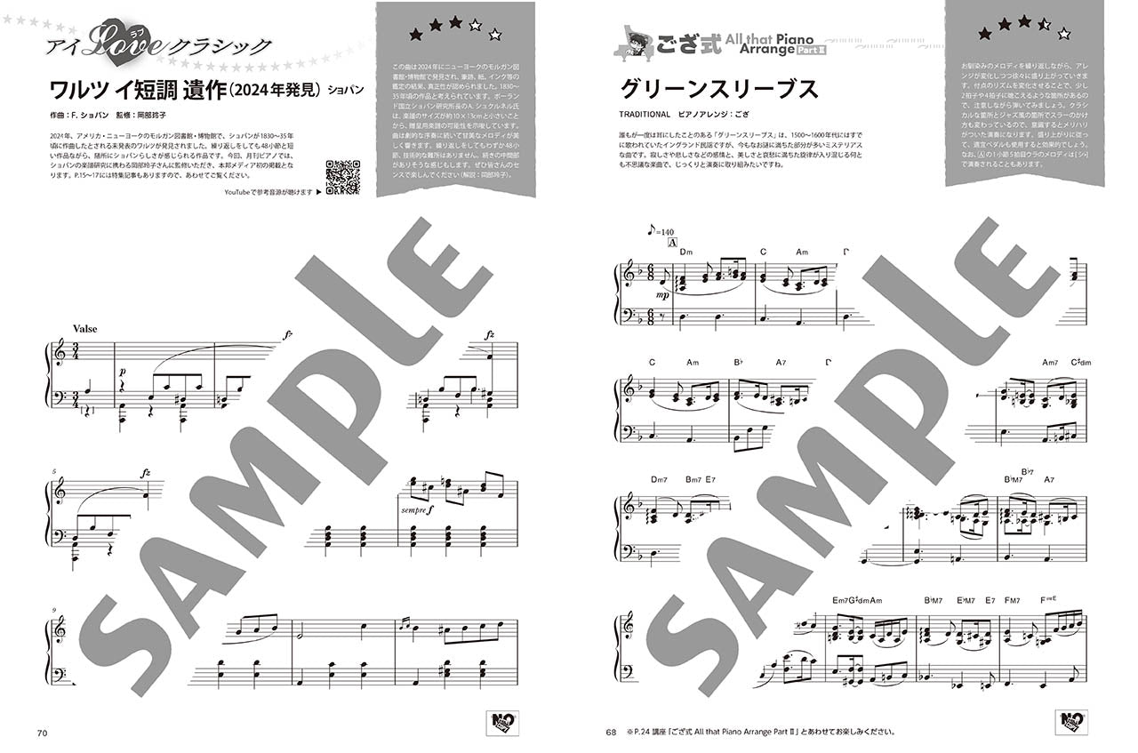 最新ヒットからスタンダードまで“弾きたかったあの曲”がきっと見つかるピアノマガジン。 3月号の特集は「生誕150年記念 ラヴェルの魅力に触れる」、「プレゼントにもおすすめ♪春の音楽小物&文具大集合」。インタビューは黒木雪音さん、なで肩のモDさん、尾城杏奈さんをお届けいたします。 【特集1】は「生誕150年記念 ラヴェルの魅力に触れる」。2025年3月7日に生誕150年を迎えるフランスの作曲家、モーリス・ラヴェル(1875- 1937)。ラヴェルの音楽に造詣の深いピアニストの務川慧悟さんと、連載『レコーディングの歴史』でもお馴染みの松原 聡さんが、その魅力を伝えてくださいます。【特集2】は「プレゼントにもおすすめ♪春の音楽小物&文具大集合」。この春のピアノライフをより楽しめる小物や文具をピックアップ!あると便利なお役立ち小物から、キャラクターアイテムまでお見逃しなく。 【ピアニスト・インタビュー】は国際コンクールでの入賞を経て、日本国内のみならず海外での公演も多く、高い評価を得ている黒木雪音さん、YouTubeチャンネルをはじめ、SNSで大人気の「なで肩のモD」こと塩﨑基央さん、2020年のピティナ・ピアノコンペティション特級でグランプリを受賞された尾城杏奈さん。【My Favorite Partner】の第36回は小田井郁子さん。 【Catch Up!!】ショパン 「ワルツ イ短調 遺作(2024年発見)」。2024年10月、フレデリック・ショパンの未発表作品の楽譜がニューヨークで見つかったという驚愕のニュースが飛び込んできました。長年にわたり、ショパンのエディションを研究されている岡部玲子先生に、新しく発見されたワルツについて、そして、ショパンの音楽をどのように捉え、楽しめばよいかについて、お話を伺いました。業界初のハモリ機能を搭載した『ヤマハのおうたえほん』が2025年3月下旬に発売決定!新たな音楽体験ができる本商品の魅力をご紹介します。 楽譜は、TVアニメ『SAKAMOTO DAYS』オープニング・テーマ「走れSAKAMOTO」(Vaundy)、映画『はたらく細胞』主題歌「50%」(Official髭男dism)、「春愁」(Mrs. GREEN APPLE)、「世界中の誰よりきっと」(中山美穂 & WANDS)、「さくら(独唱)」(森山直太朗)、「The Rose」(ベット・ミドラー)、「遠く遠く」(槇原敬之)、「にじ」、ディズニー映画『白雪姫』より「ハイ・ホー」、「紅」(X JAPAN)、「ワルツ イ短調 遺作 (2024年発見)」(ショパン)、春畑さんの連載<セロリの電Pパーク!> は「沈丁花」(DISH//)、事務員Gさんの連載アレンジは「One more time, One more chance」(山崎まさよし)、ずっしーさんのアレンジによる「Can You Keep A Secret?」(宇多田ヒカル)、ござさんの連載は「グリーンスリーブス」。今月も最新ヒットから人気の定番曲まで、魅力満載の楽曲を初級・中級・上級の幅広いアレンジでお届けします!
