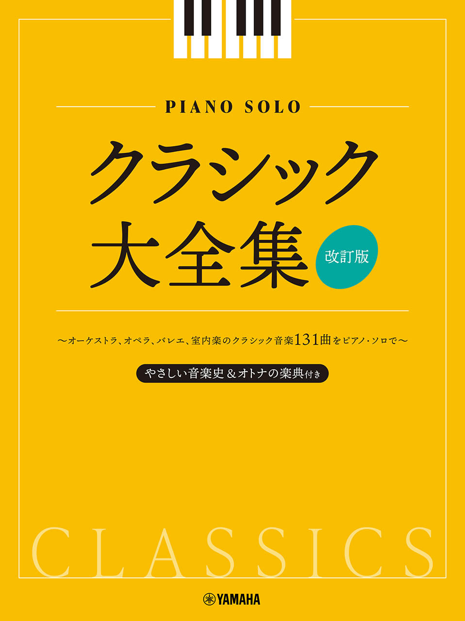 オーケストラ、室内楽、オペラ、バレエ音楽等クラシックの定番曲131曲を、2~4ページ程度の原曲を良いとこどりした弾きやすいアレンジで収載。