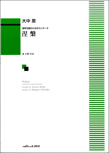 あれや、これやで-まるで中途半端な原稿をお見せしたのが1966年の二月でした。大変いそがしい創作活動の中に、拙作を加えて頂いて、その十二月の暮に私の手元に届いたのは、演奏時間40分にもなろうという長尺物になっていました。大変シンプルな構造ながらも、今までの仏教交声曲とは余程その趣を異にした、情緒細やかな、すき透るような荘重な音楽となって完成しました。作詩者の私にとっては、全く面映ゆい限りの出来ばえでした。大中さんの述懐にいわく「あの一年間は、全くこの涅槃の二文字に憑かれたような気がする」と、大変御迷惑をかけて済まないような気もしますが、全十章の中の数篇にわたって、従来の大中作品では伺い得なかった新境地も聞けるようで私にはそれが又、云いようのないうれしさにもなっています。長い長い苦心の末に、新しい壁をつき破って、新分野を開かれた芸術的良心というか、情熱というものにいたく心打たれました。そして類まれな素晴らしい人にめぐり遇えた感動すら湧いてきました・・・・・・ 。