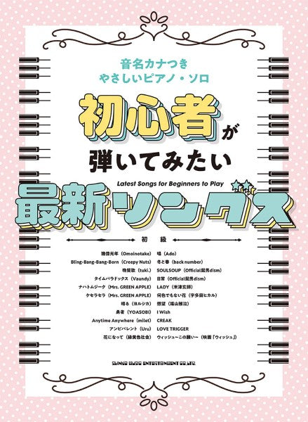 よく耳にする最新ソングを弾きたい初心者におすすめの初級ピアノ楽譜集♪ 「冬と春」「Bling-Bang-Bang-Born」「ナハトムジーク」など、J-POPを中心に話題曲を多数掲載! すべての音符に音名カナつきで、気軽に演奏を楽しめます◎
