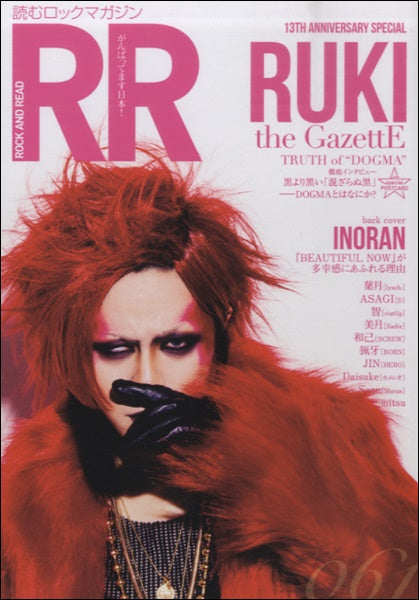 ミュージシャンのパーソナルロングインタビュー集『ROCK AND READ』最新号の表紙巻頭は、この号が発売される8月26日に2年振りのニューアルバム『DOGMA』をリリースするthe GazettEのボーカリスト、RUKI。結成13周年を迎え、掲げられた壮大なコンセプト「DOGMA(教義)」とは何であるのか。「黒よりも黒い、混ざらぬ黒」・・・・・・これぞthe GazettEの真骨頂と言える、どこまでも暗黒なアルバム『DOGMA』の魅力に、2万字ロングインタビューでとことん迫ります。また、赤髪と金髪の2wayで撮り下ろされたショッキングなグラビア写真も注目です。