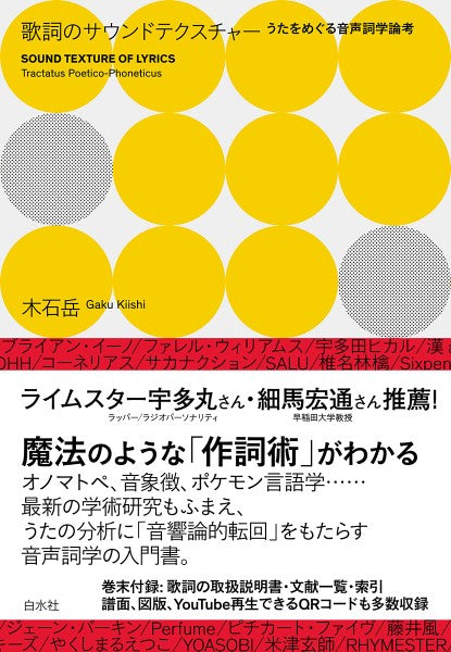 YOASOBI、米津玄師、ADO、NewJeans・・・・・・新時代のポップスがもっと楽しめる、「耳寄りな学問」にようこそ! オノマトペ、音象徴、ポケモン言語学など、最新の学術研究もふまえ、人気アーティストたちによる魔法のような「作詞術」をめぐり論考してゆく。言語学+音声学+認知心理学+脳科学=「音声詞学」の入門書。