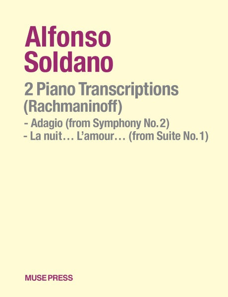 ラフマニノフやボルトキエヴィチ等のロシア音楽を得意とするアルフォンソ・ソルダーノによる新たなラフマニノフのピアノ編曲作品を出版します。今回、ラフマニノフの代表作として語られる「アダージョ」(交響曲第2番より)、そして、元々は2台ピアノのために作曲された「愛・・・夜」(組曲第1番より)がピアノ独奏版として生まれ変わります。ピアノが本来持つ特性を活かしつつも、さまざまな楽器の役割をピアノ一台で表現しています。
